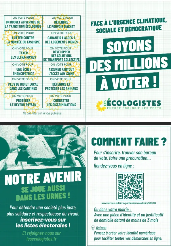 Ci-dessous vous trouverez les dernières campagnes des Ecologistes. Vous pouvez cliquer sur les tracts pour accéder aux versions imprimables.